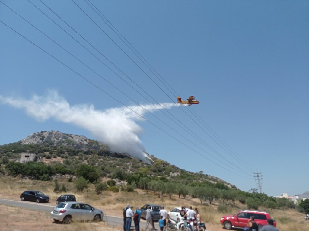 Η φωτιά κατακαίει χαμηλή βλάστηση, ενώ στο σημείο επιχειρούν 41 πυροσβέστες με 9 οχήματα, δύο ομάδες πεζοπόρων τμημάτων, τέσσερα αεροσκάφη (δύο Canadair CL215 και δύο Air Tractors) και ένα ελικόπτερο Erickson.