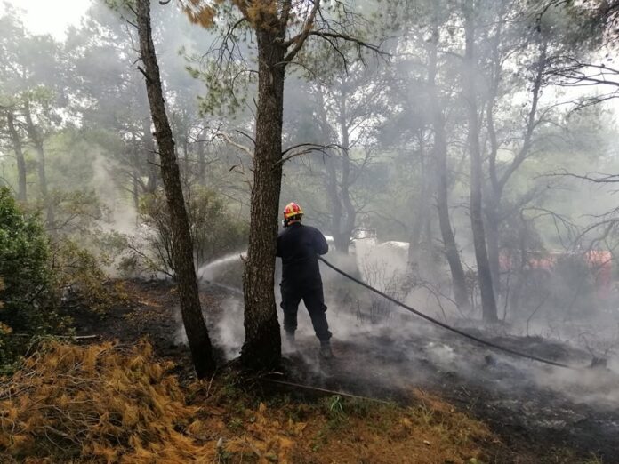 Είκοσι πυροσβέστες με επτά οχήματα και τη συνδρομή εθελοντών έχουν καταφέρει να περιορίσουν τη φωτιά