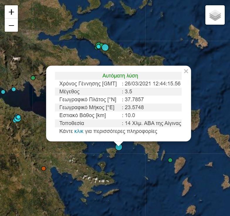 Σεισμική δόνηση μεγέθους 3,5 Ρίχτερ σημειώθηκε στις 14:44 το μεσημέρι της Παρασκευής στην Αίγινα.