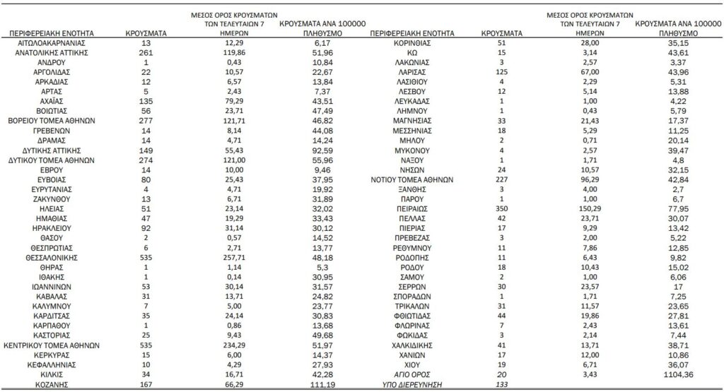 🔴 261 από την Ανατολική Αττική (99 χθες).