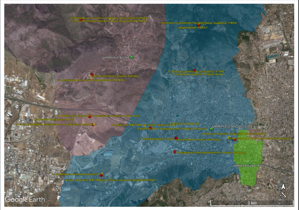 - Την ενεργειακή και υδρολογική αυτοτέλεια του Δήμου Φυλής.