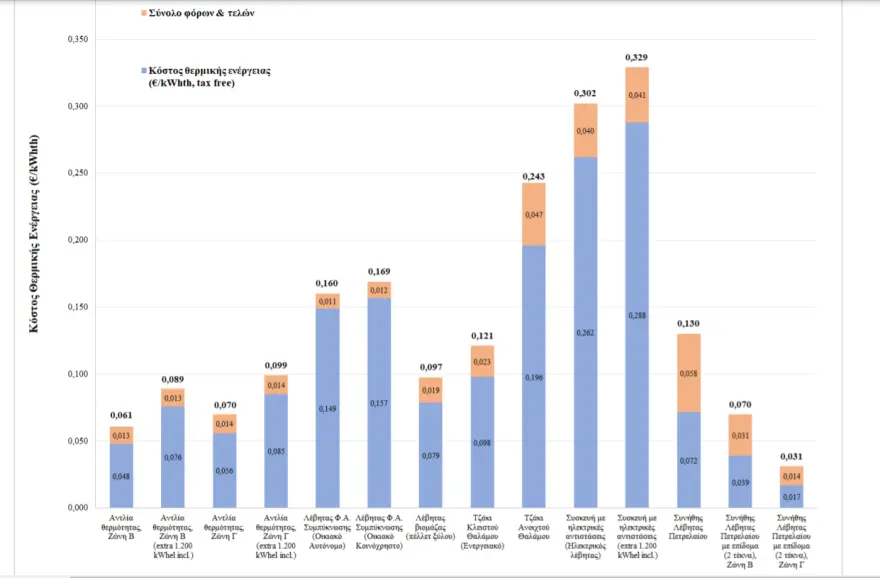 Το κόστος θέρμανσης στην Ελλάδα – Συγκριτική μελέτη του ΕΜΠ (πίνακες)