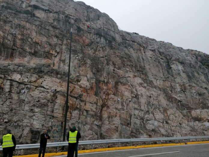 Οι εργασίες ξεκίνησαν στις 6 Απριλίου, εξαιτίας των συχνών κατολισθήσεων μικρών και μεγάλων βράχων και προχώρησαν με τη μέγιστη δυνατή συμπίεση χρόνου, προκειμένου να μην ενοχληθούν ιδιαίτερα οι διερχόμενοι οδηγοί αλλά και οι περίοικοι. Όπως επισημαίνεται, χρειάστηκε να τοποθετηθούν με επείγουσες διαδικασίες επιπλέον 2.000 τ.μ. πλήρως αγκυρούμενων πλεγμάτων, προκειμένου ο δρόμος να είναι απολύτως ασφαλής, ενώ κατά το ίδιο διάστημα ολοκληρώθηκαν οι εργασίες διαγραμμίσεων, τοποθέτησης μεταλλικών στηθαίων ασφαλείας και επισκευής και αποκατάστασης του δικτύου ηλεκτροφωτισμού.