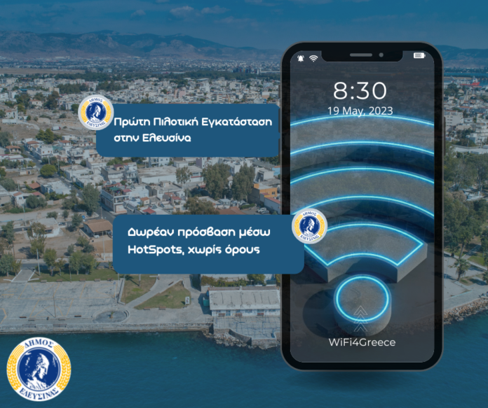 Από τον Δήμο Ελευσίνας αναμένεται να ξεκινήσει η πιλοτική εγκατάσταση σημείων ασύρματης πρόσβασης στο διαδίκτυο, στο πλαίσιο του έργου WiFi4Greece. Πρόκειται για έργο του υπουργείου Ψηφιακής Διακυβέρνησης, το οποίο αφορά σε δήμους τουριστικού και πολιτιστικού ενδιαφέροντος.