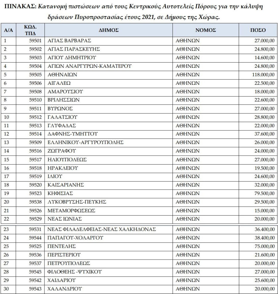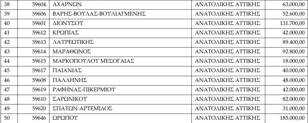 Διαβάστε παρακάτω τους πίνακες με τα ποσά που κατανέμονται στους Δήμους της Περιφέρειας Αττικής: